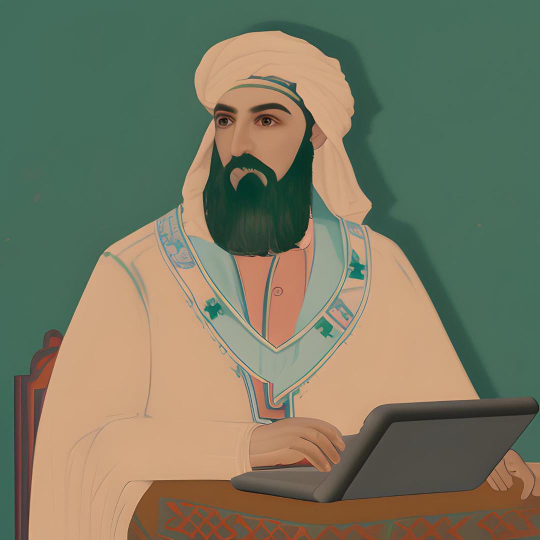 An AI-generated image of Emir Abdelkader using a computer (created using canva.com)