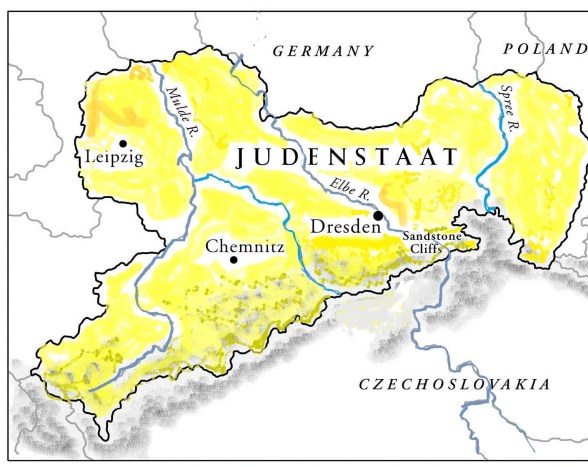 مع هزيمة ألمانيا في الحرب العالمية الثانية، قرّر الحلفاء اقتطاع جزءٍ من الأراضي الألمانية من أجل إقامة وطنٍ قومي لليهود الناجين من المحرقة النازية. بعدها بثلاث سنوات، تحديدًا في 14 مايو/أيار عام 1948، تم الإعلان عن ولادة “الدولة اليهودية” على أراضي ولاية ساكسونيا في شرق ألمانيا وعاصمتها مدينة درسدن. كان هذا الإعلان ثمرة جهود المفكّر والناشط السياسي اليهودي-الألماني ليوبولد شتاين، الذي نجح في انتزاع موافقة زعماء دول الحلفاء الثلاثة الكبار (جوزيف ستالين، فرانكلين روزفلت، وونستون تشرشل) على مشروع “الدولة اليهودية” أثناء اجتماعهم في مؤتمر يالطة الشهير في فبراير/شباط عام 1945، كما نجح في إقناع يهود أوروبا بأن حلم إقامة وطنٍ قومي لهم ما زال ممكنًا رغم فشل محاولاتٍ سابقة في فلسطين وأوغندة وبيروبيجان (في شرق روسيا).